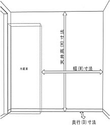 測った幅を基に、食器棚の総W寸法を決めて下さい。